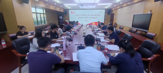 4月19日上午,法学院党委在立德楼731组织召开党纪主题教育启动部署会会议,并召开学院党委理论学习中心组(扩大)学习会,学院党委委员、全体党支部书记、团委书记、辅导员参加,会议由党委书记陈静主持。
